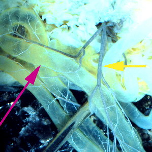 → | 気管白色部 | ![]() 絹糸腺に気管が附着している |