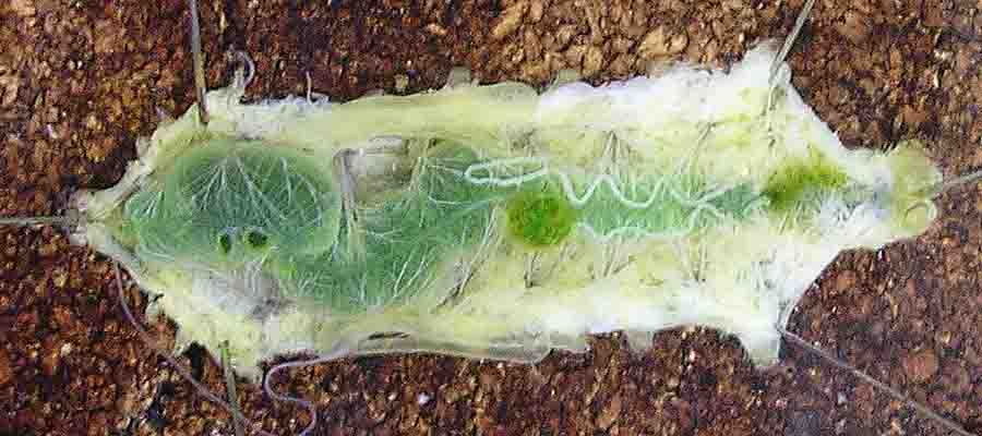 幼虫を浸す(カイコは水に数十分漬かっていても窒息しません)。