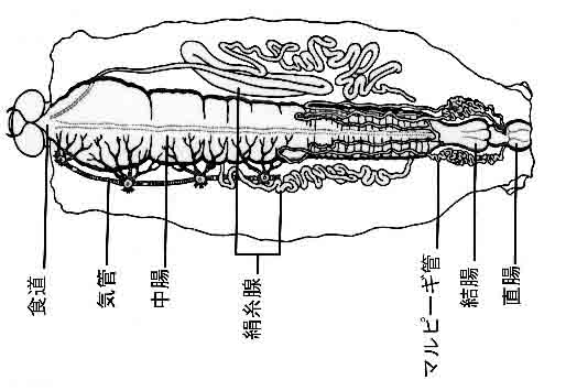 カイコ幼虫の内部形態