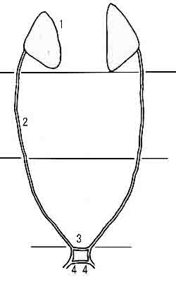 | 3:紐体末端 | 3:ヘラルド腺 | |