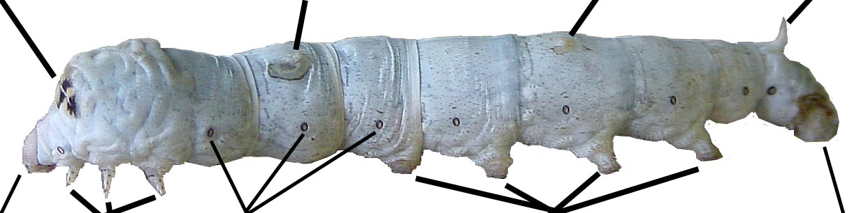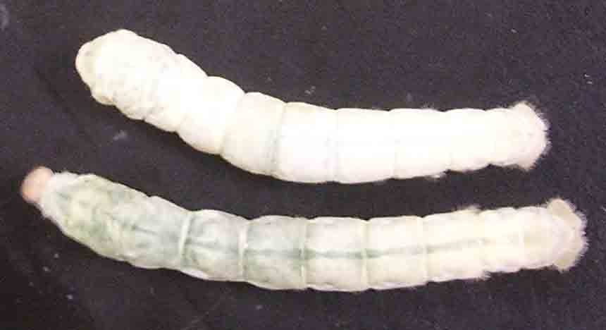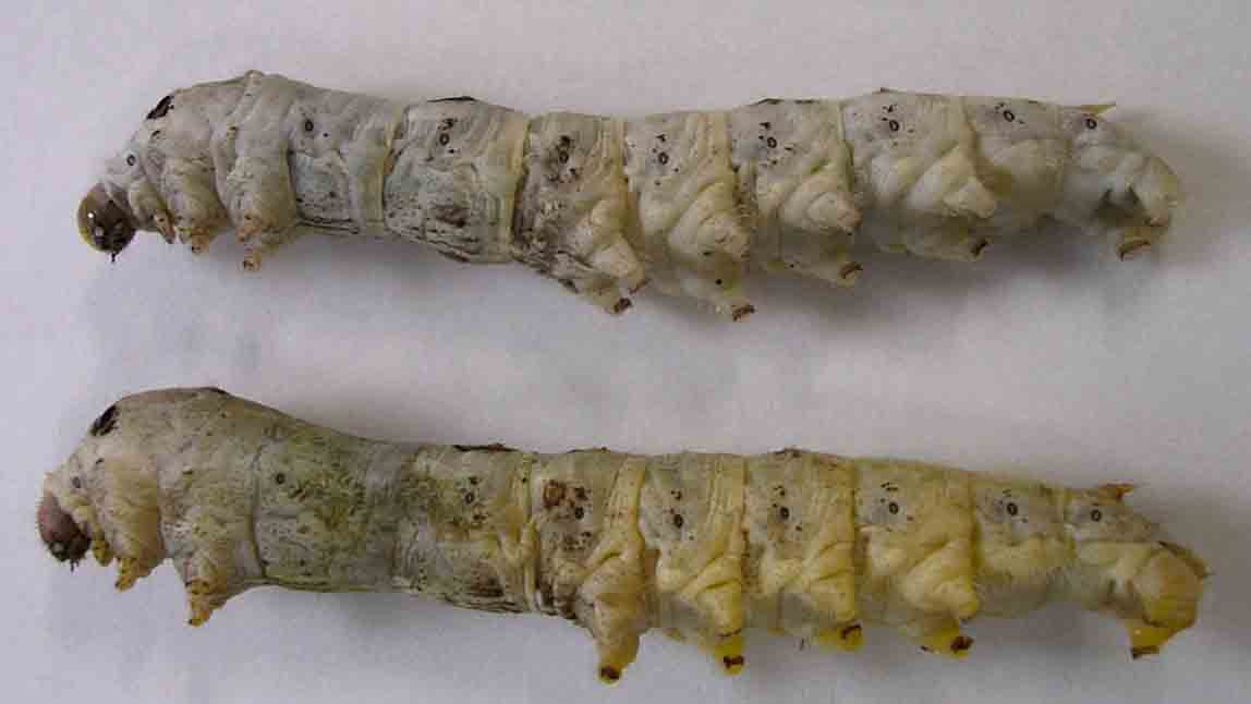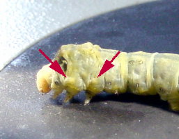 | 黄血蚕 体液が黄色いため腹脚や尾脚が黄色く見える | |