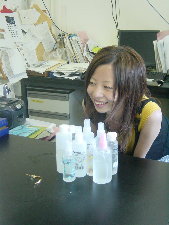 (7) グリセリンを加え、鍋から化粧瓶に移してできあがり。
