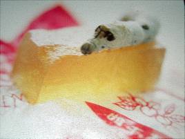 このカイコはいわば味オンチなのでキャベツ、リンゴ、ゼリー等々