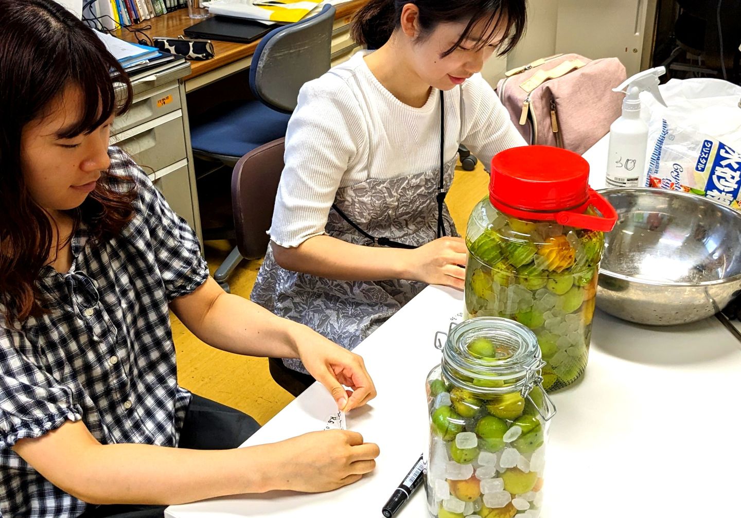 6月には梅やアンズを収穫して、果実酒を作ります。梅が豊作な年には梅干しも作ります!自分達で一から生産した果実酒での乾杯は格別です。