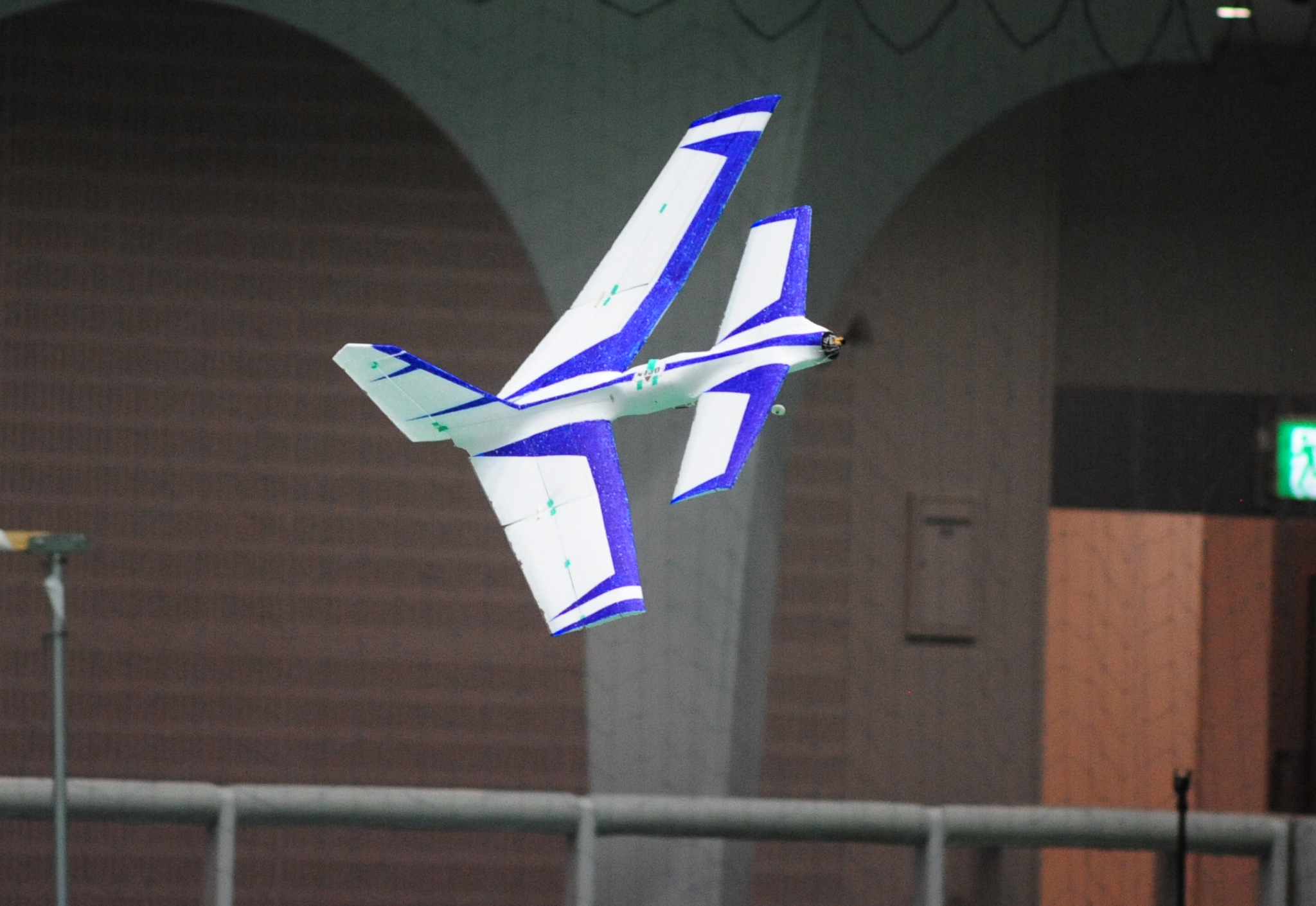 航空法の制限を受けない100g未満を目指して製作された機体。胴体にカーボンを使用し最終的にリポを積んで90gにおさまった。