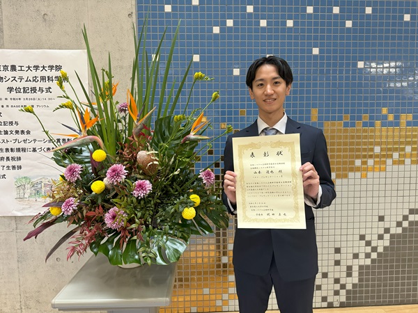 BASE第2G修士論文発表会ベストプレゼンテーション賞 受賞!! 2024年3月26日(火),M2の山本君が,生物システム応用科学府第2グループ修士論文発表会ベストプレゼンテーション賞を受賞しました。おめでとうございます! ▶ すべての新着情報へ戻る