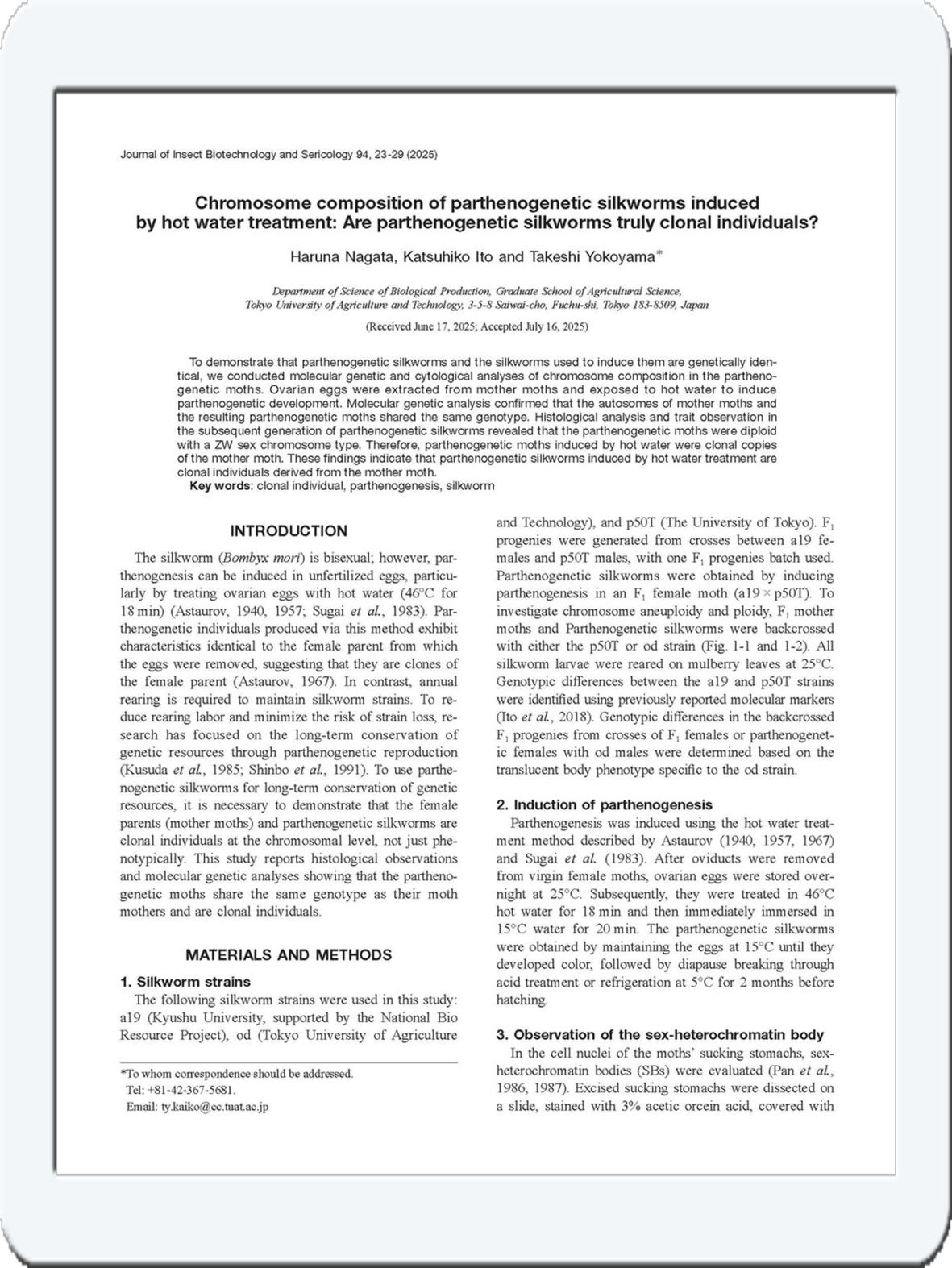 この論文で長田さんは令和7年度日本蚕糸学会進歩賞(奨励賞)の受賞となりました!