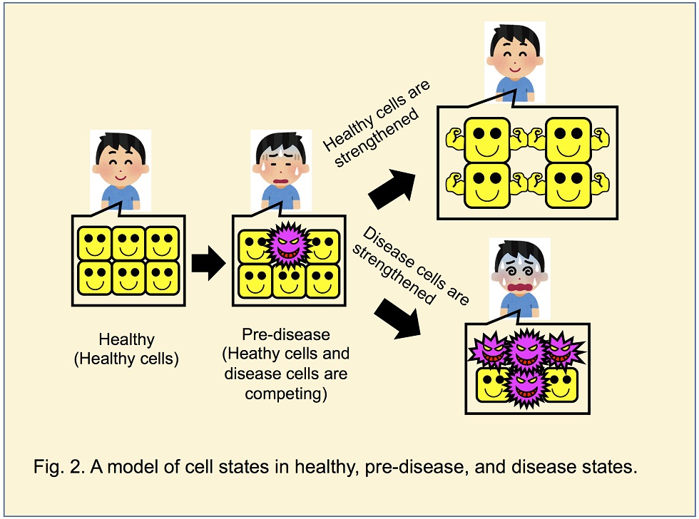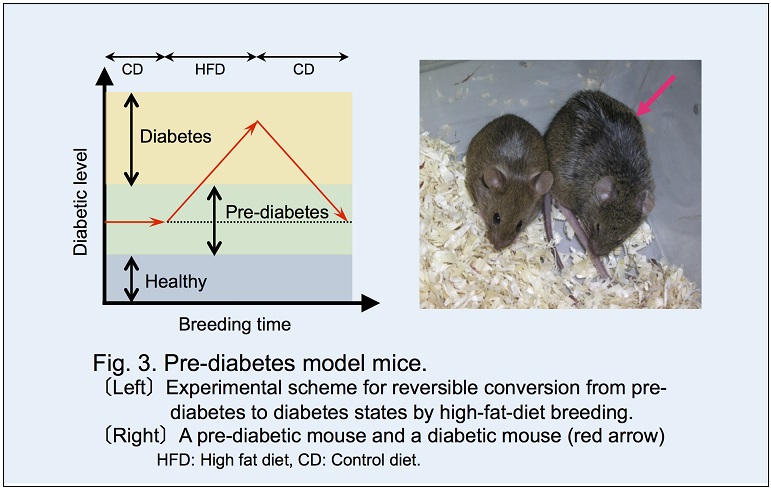 Using these models,we are engaged in research subjects focused on how to prevent the progress of diseases (Fig. 1), e.g.from pre-diabetes to diabetes,