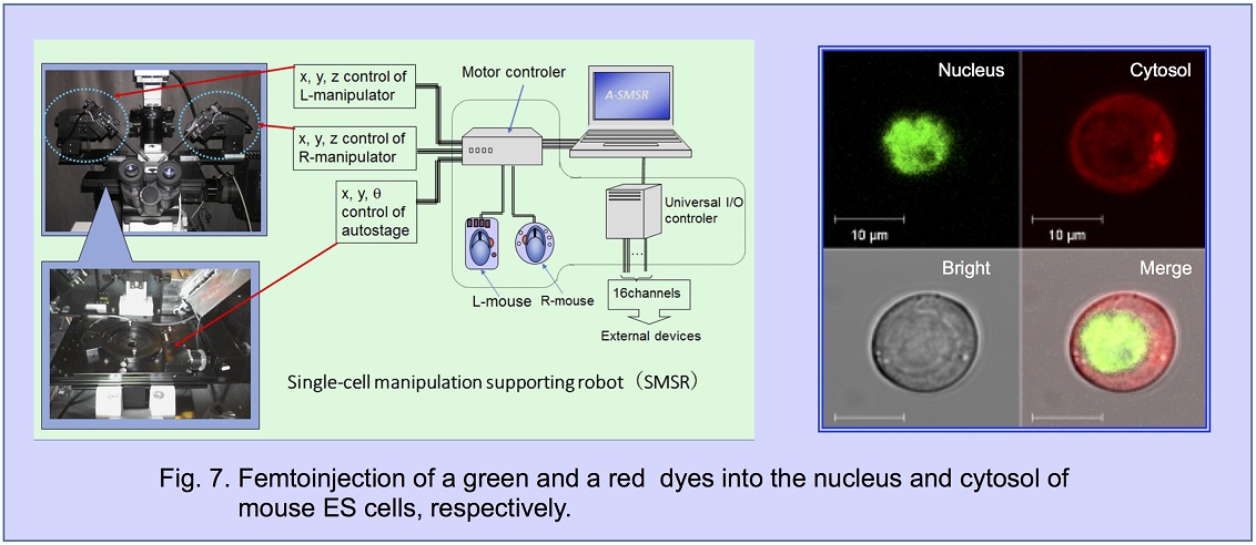 the femtoinjection. For the rapid and efficient femtoinjection, a useful supporting robot (Fig. 7) and a dish operating device