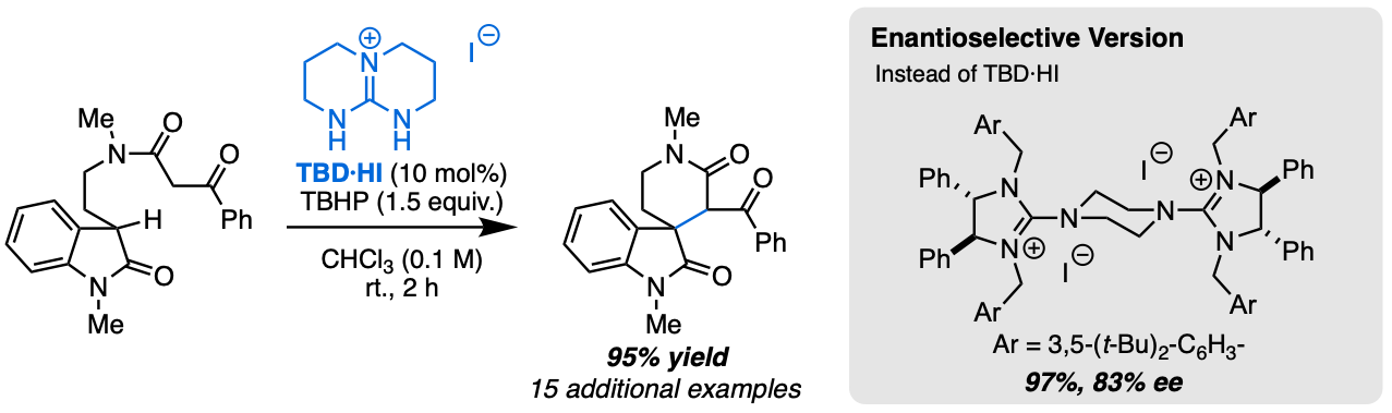 [207] Guanidinium Hypoiodite-Catalyzed Intramolecular Oxidative Coupling Reaction of Oxindoles with β-Dicarbonyls