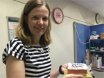 約3か月間研究室ローテーションの日程を終了した今田君のFarewell パーティーでした。この日今田君の誕生日でもあり、皆でお祝いしました。 |  |