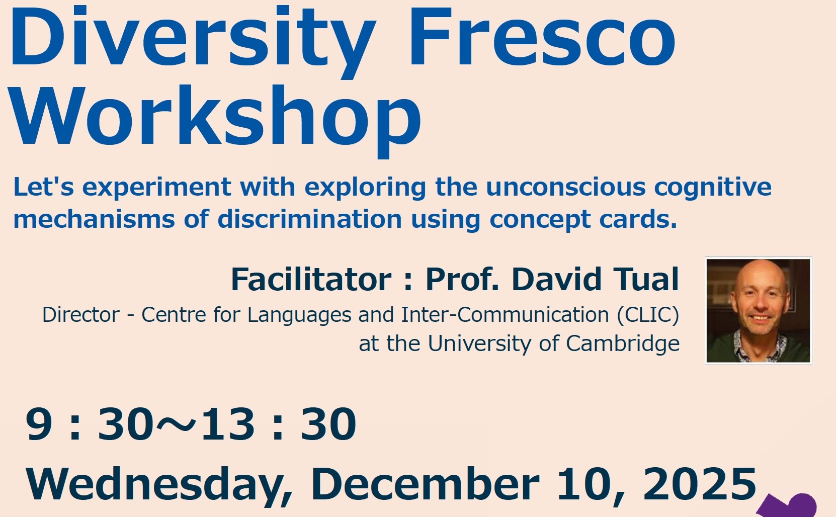 Diversity Fresco Workshop 〜12月10日9:30~13:30開催、定員16名、英語力準一級/TOEIC800以上相当、申込みはコチラ(12/5締切)