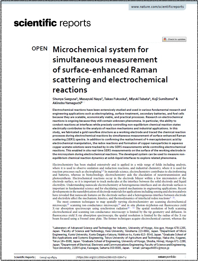 実験では、酢酸銅水溶液における電気化学反応追跡を行っています。ナノ構造電極表面にメルカプト安息香酸を塗布した場合と