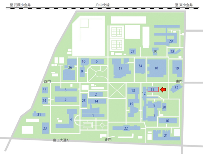 当研究室は、東京農工大学工学部(小金井キャンパス)の11号館2階と3階のフロアとなっております。