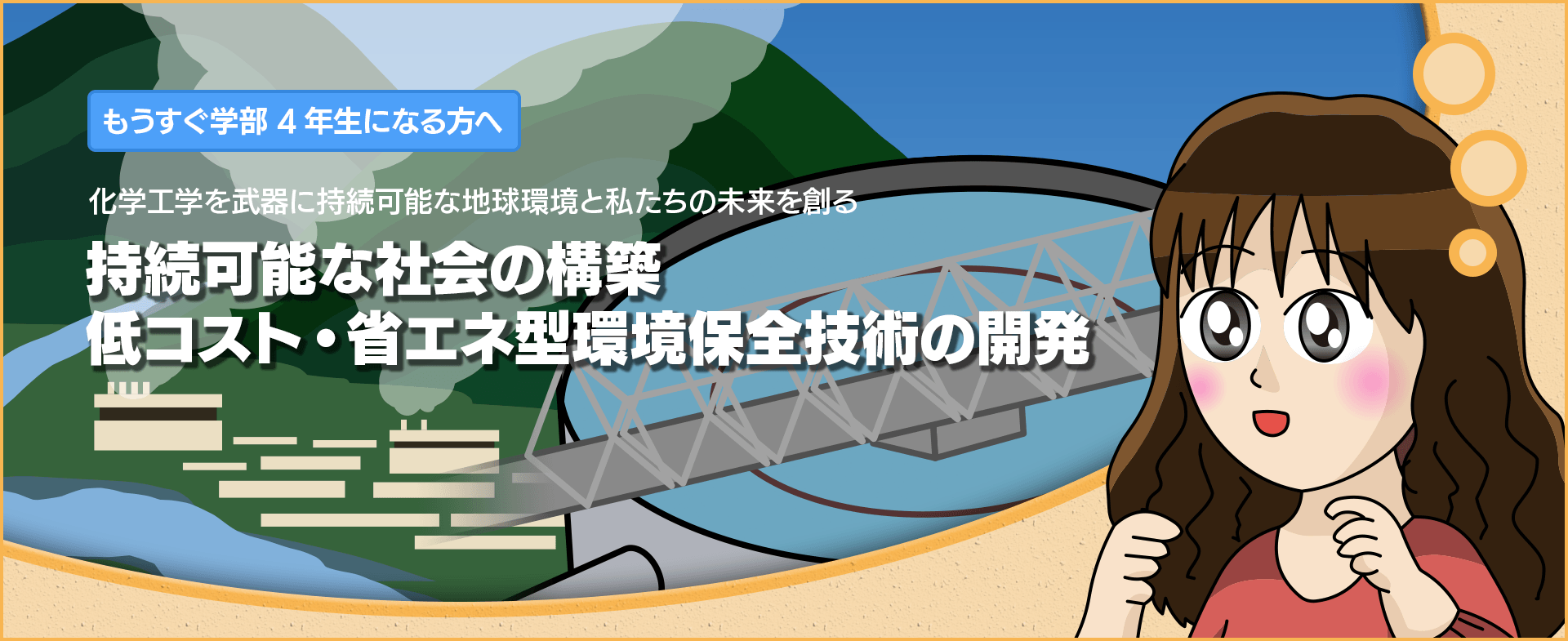 21世紀の地球環境問題に対して幅広い知見から信念を持って取り組んでいける研究者・技術者になるための環境、なりたい自分になれるチャンス が寺田・利谷研究室にはあります。研究を通して失敗を恐れずチャレンジし、成長していきたい皆さんをお待ちしています。