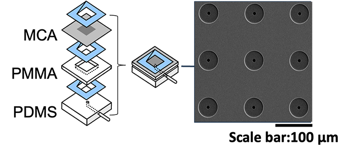 We have developed a filter-type device called a microcavity array (MCA), which consists of fine pores of several micrometers in diameter arranged at equal intervals, and by aspirating the cells, they can be densely arranged (arrayed). Our laboratory has found it possible to collect CTCs by using MCAs. As a result of studying the size, shape, and number of pores suitable for CTC collection, we have succeeded in developing MCA that can collect cancer cells with a collection rate of more than 95% from a mock sample of cancer cells mixed with blood from a healthy individual. We are currently developing an automated blood cancer cell collection device for practical use of this technology, and are conducting clinical trials in collaboration with medical institutions. We are also developing MCA to collect white blood cells and microorganisms.