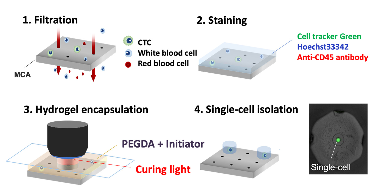 To thoroughly evaluate the characteristics of CTCs, it is crucial to isolate individual cells and analyze their genomes and transcriptomes. However, conventional methods often involve bulky equipment and complex procedures for single-cell isolation. Additionally, the extremely low abundance of CTCs makes it difficult to isolate them from MCA collections without significant loss.
